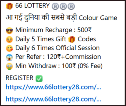 66 Lottery is a colour prediction gaming platform. Users bet on colours (Red, Green, Violet) to win money. Sounds simple, doesn’t it?
