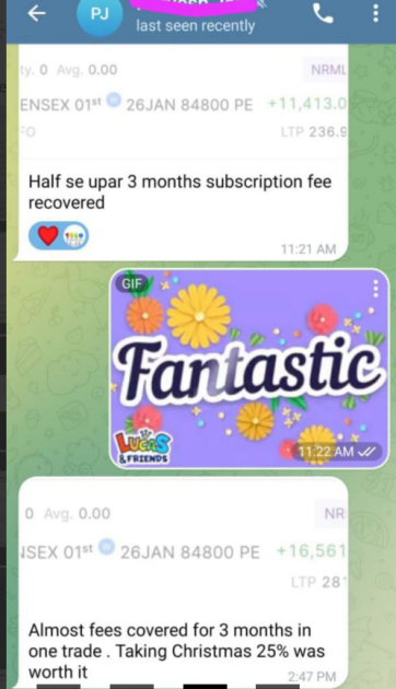 Messages like “Half se upar 3 months subscription fee recovered” appear regularly. “Almost fees covered for 3 months in one trade.”
