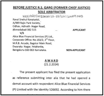 Alice Blue Arbitration Case