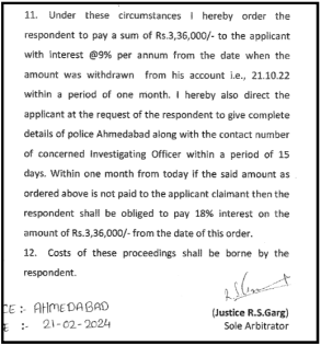 The final order directed the broker to pay ₹3,36,000 along with interest at 9% per annum from 21 October 2022 until payment.