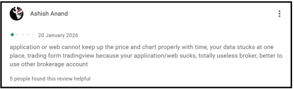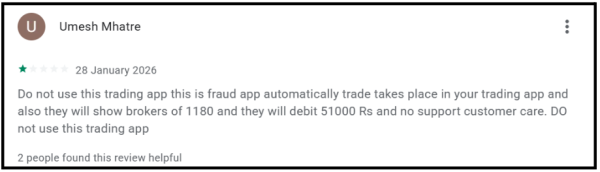 A user left a 1-star review in January 2026, warning other investors not to use the trading app, describing automatic trades taking place in the account without the investor placing any order.