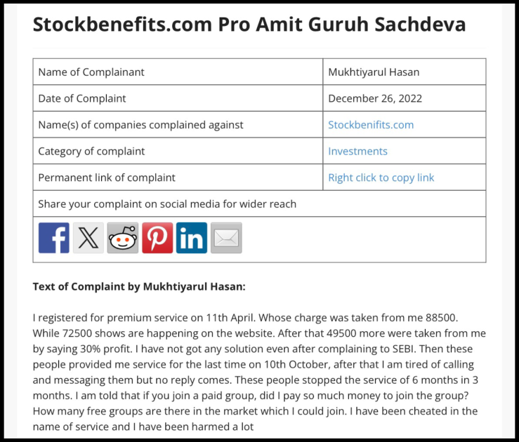 Amit Guruh Sachdeva runs Stock Benefits Financial Services from Lucknow. He has 17 years of experience in helping people with stock market tips. His website looks pretty professional.