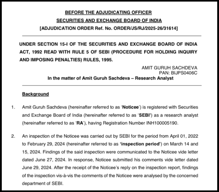 SEBI passed this order after inspecting how Amit Guruh Sachdeva was running his research and advisory activities. During an inspection of his work between April 2022 and February 2024, SEBI found that he was not keeping basic mandatory records, like: