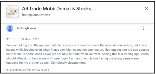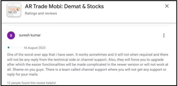 One of the most widely upvoted reviews highlighted a recurring issue of the Anand Rathi app not working despite a high-speed internet connection.