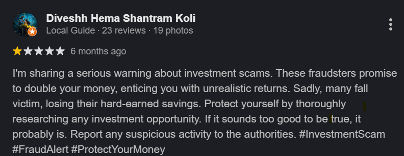 One user raised a complaint to warn people about investment scams run by Berij Financials.