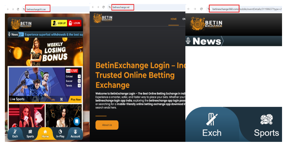 At present, Betinexchange operates through multiple websites: betinexchange360.com, betinexchange.net, and betinexchange24.com.