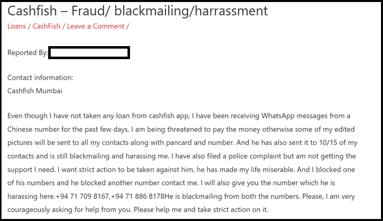 If you have downloaded Cash Fish or any similar app claiming instant loan provider, then take instant action and complaint against online loan app and report your case.