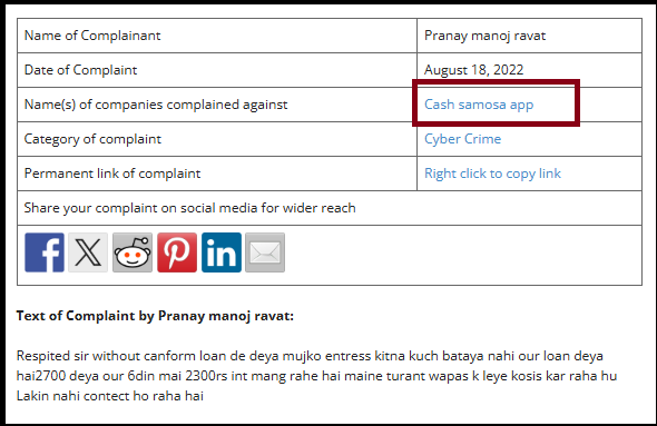 In fact, Cash Samosa is often mentioned alongside other fraudulent digital lending apps that trap users in cycles of harassment, illegal recovery tactics, and extreme mental stress.