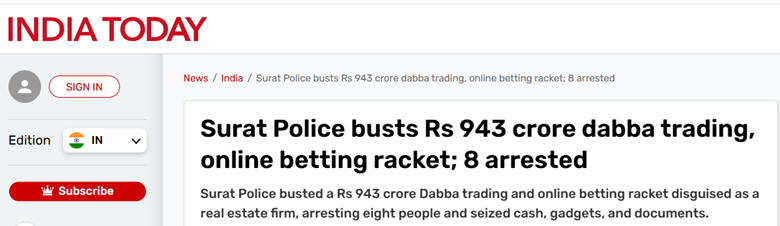 According to reports, the dabba traders operated their trading and online betting schemes under the guise of Sunrise Developers, a real estate company. The main accused—the company’s owner—had already been convicted in other scam cases.