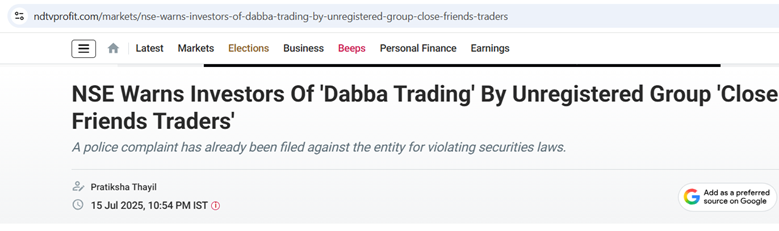 As per the article, an unregistered group was practising dabba trading using a name such as “Close Friend Traders” and “Dabba Trading MCX”.