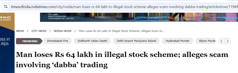 Case 1: Victim lost ₹64 Lakh in Dabba Trading Scam