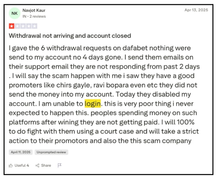Dafabet login might look like just another quick step between you and a big win. But, in reality, it opens the door to a risky world of illegal betting, APK downloads, unresolved complaints, and frequent Dafabet withdrawal problems reported by users.