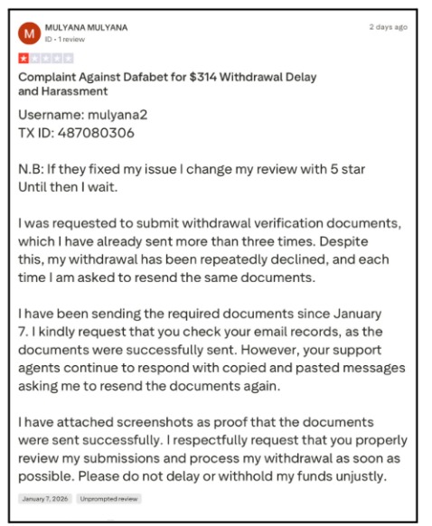 Dafabet Withdrawal Complaints