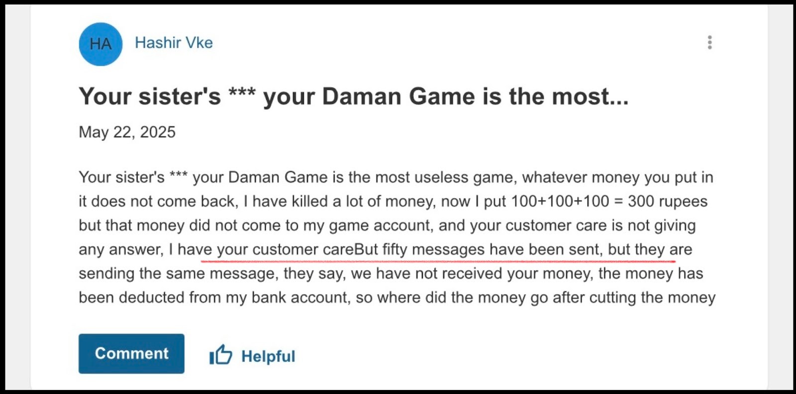 Thousands of users are reaching out for help, citing similar issues but with different intensities and variations. Let’s break down the major types of complaints that users file against Daman Games.