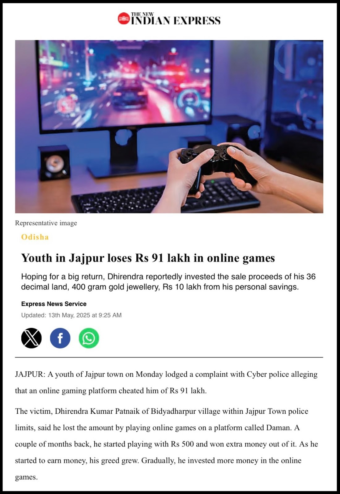 It’s hard to believe how quickly a few harmless online games can turn into a financial nightmare. That’s exactly what happened to Dhirendra Kumar Patnaik, a young man from Bidyadharpur village in Jajpur town, Odisha.