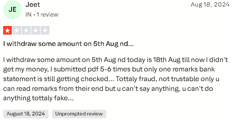 - Widespread withdrawal problems: Many users report that withdrawals remain pending or never arrive.