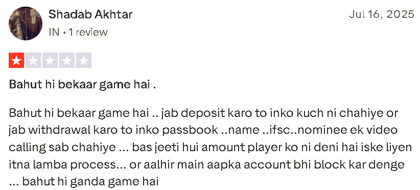 One user, Shadab Akhta,r posted that he faced issues while withdrawing funds from the app. He mentioned in his complaint that the platform demanded irrelevant documents just to delay or block the withdrawal of funds.