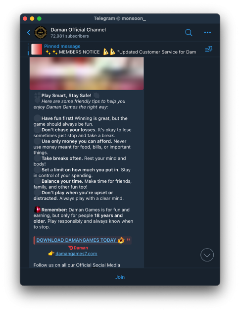 Let’s get into more detail to give you more reasons why you should not join Daman Games Telegram Channel: