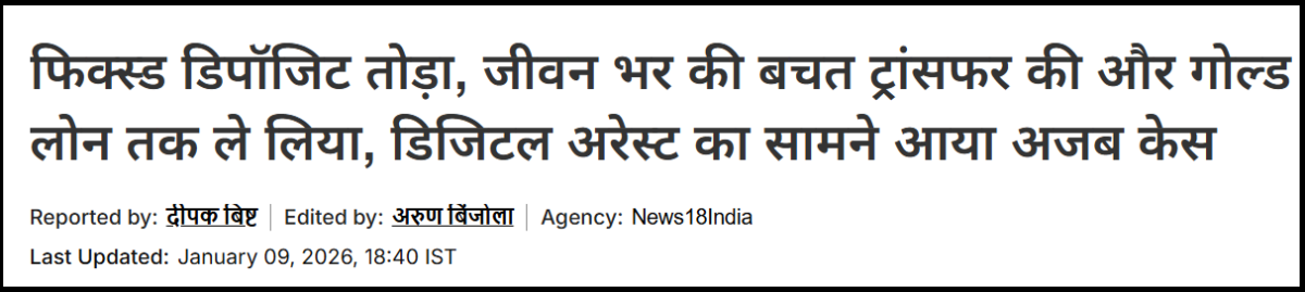 अब ठग सिर्फ़ लॉटरी या फेक कॉल तक सीमित नहीं रहे। उनका नया हथियार है, डर और तकनीक का खतरनाक कॉम्बिनेशन। इसी का एक ताज़ा उदाहरण है “डिजिटल अरेस्ट स्कैम”।
