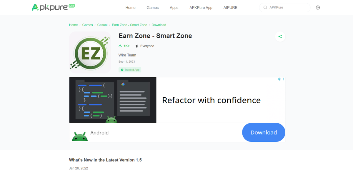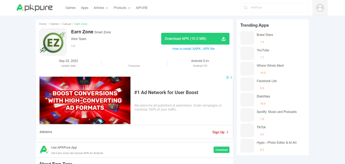A major red flag is the availability of multiple EarnZone APK files on third-party websites.