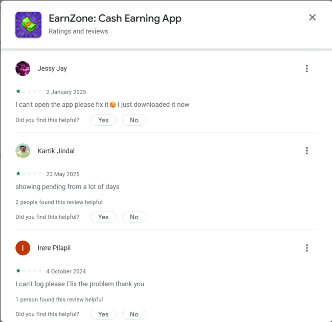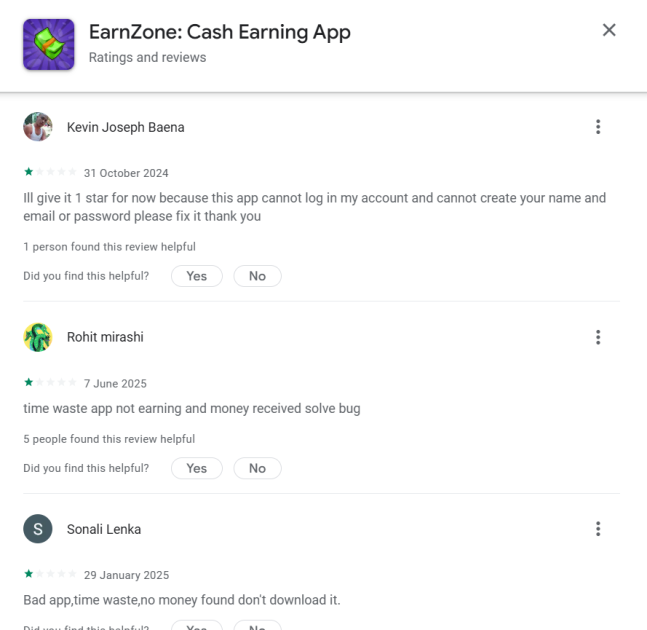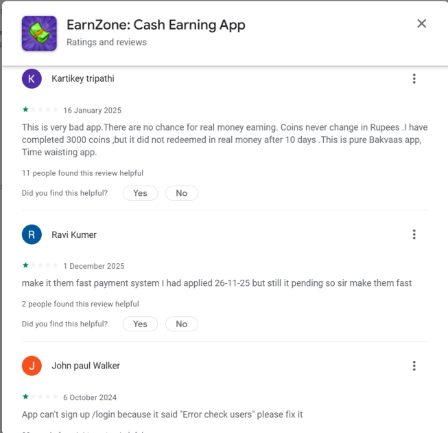 The EarnZone app is real in the sense that it exists and has been listed on the Google Play Store. However, existence alone does not equal trust.