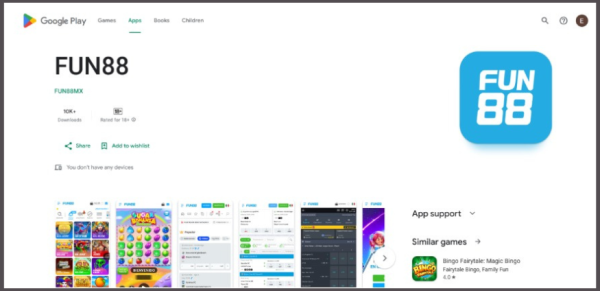 Fun88 is available on the Google Play Store, which may give users a sense of legitimacy at first glance.