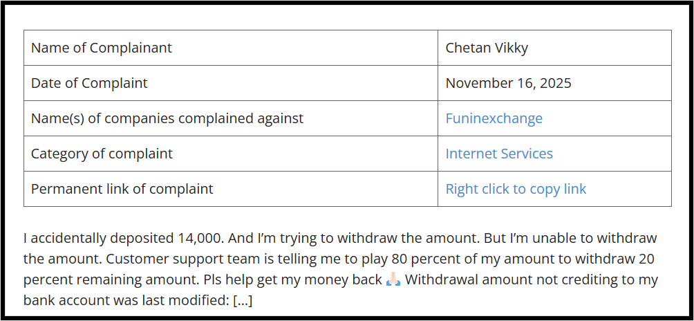 Based on the evidence in the complaint and numerous corroborating online reports, Funinexchange is operating as a high-risk, potentially fraudulent, and illegal platform in India.