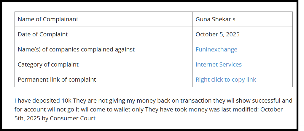 If you feel that Funinexchange has caused you any loss or behaved suspiciously, it’s important to take action instead of staying silent. Reporting your issue helps protect you and also prevents others from falling for the same problem.