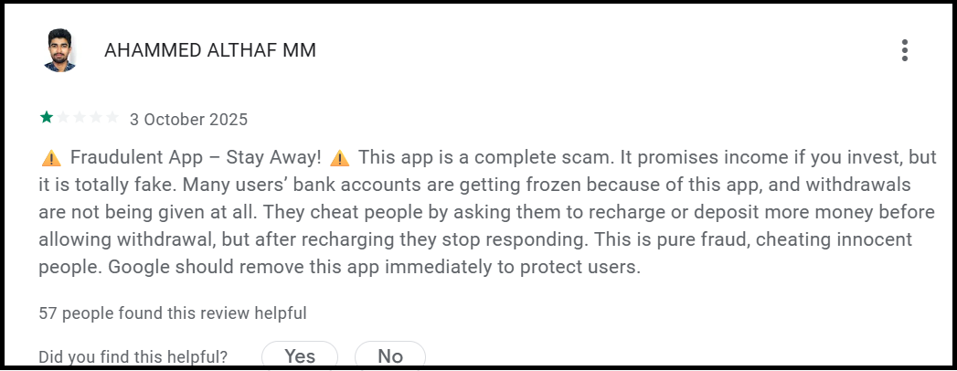 Another user, Ahammed, claimed that the app is completely fraudulent.