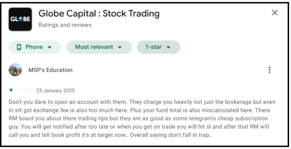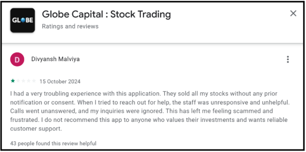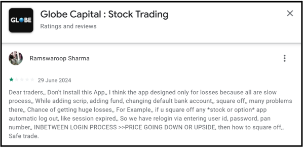 Globe Capital’s app reviews on Google Play and the App Store reflect a range of experiences from retail investors across India.