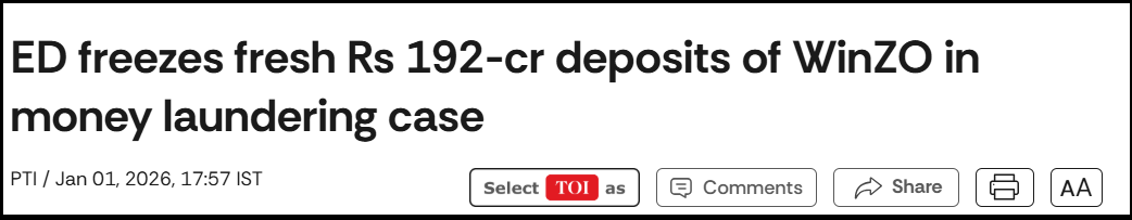 Take WinZO, where India’s Enforcement Directorate just froze another Rs 192 crore in their bank deposits, fixed funds, and mutuals.
