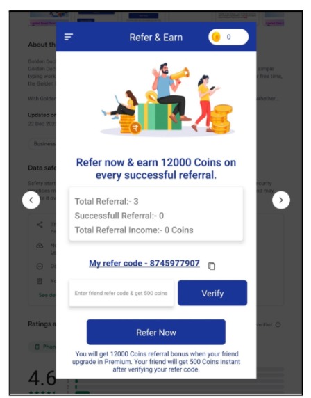 Golden Duck presents itself as a simple mobile platform where users earn coins by doing basic tasks from home, targeting students, housewives, and anyone with spare time.