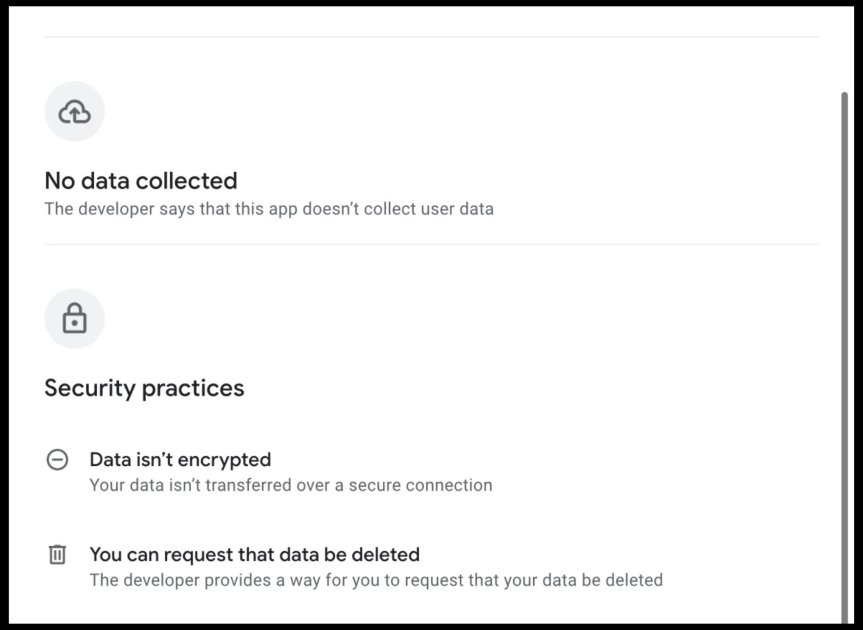 The app states upfront that no data gets collected, yet its privacy policy and Google Play permissions reveal something unusual.
