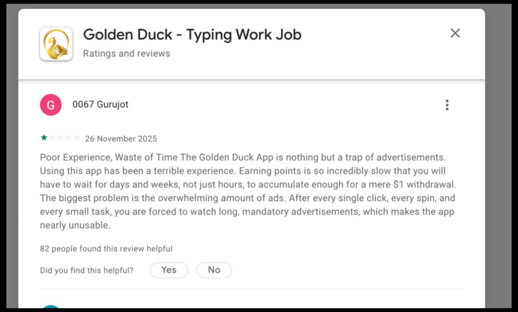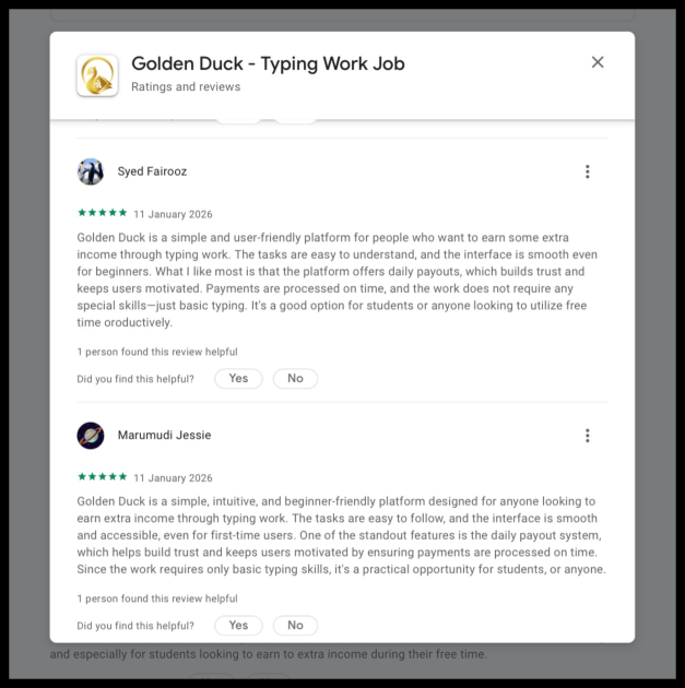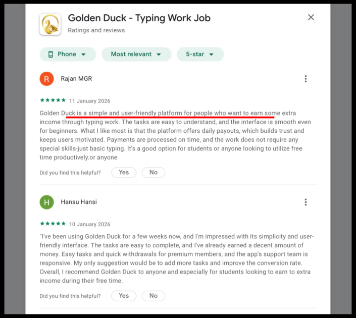 What are people really saying about Golden Duck, beyond the glowing ads? With 17,000+ reviews averaging 4.7 stars on Google Play, feedback splits between praise for easy tasks and complaints of hidden catches.