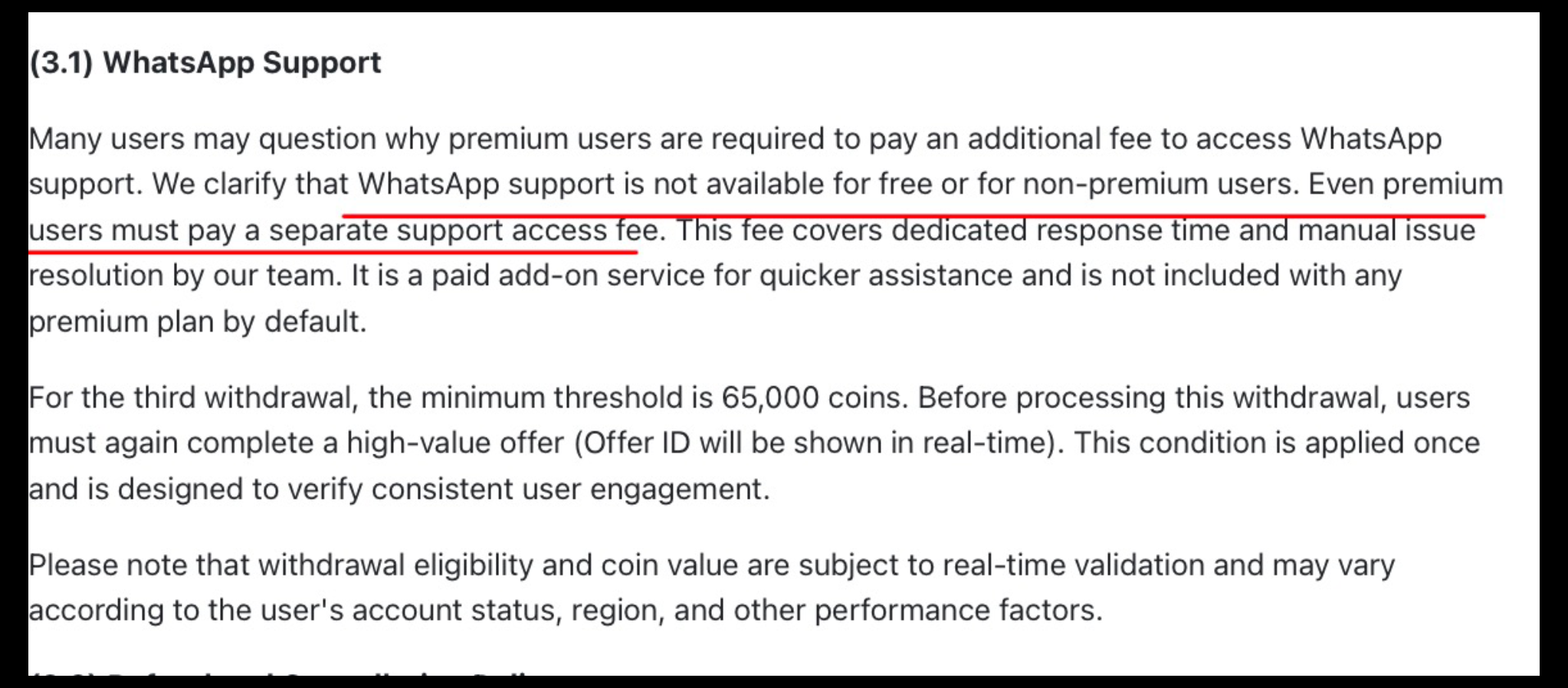 While claiming no investments, the app pushes premium subscriptions relentlessly, with certain withdrawals locked behind paid access.