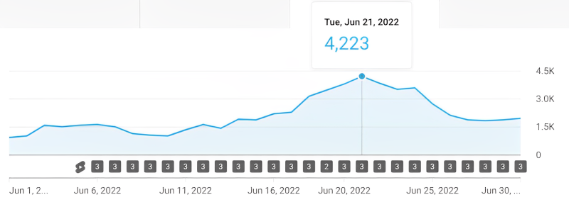The below count shows you the number of shorts published on that given day. The upper count of 4223 tells you the number of subscribers we got on that particular day.