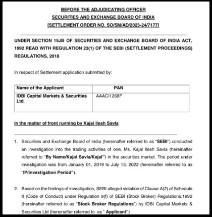 Instead of a full trial, IDBI Capital applied for settlement in March 2023, agreeing to fix its systems without admitting guilt.