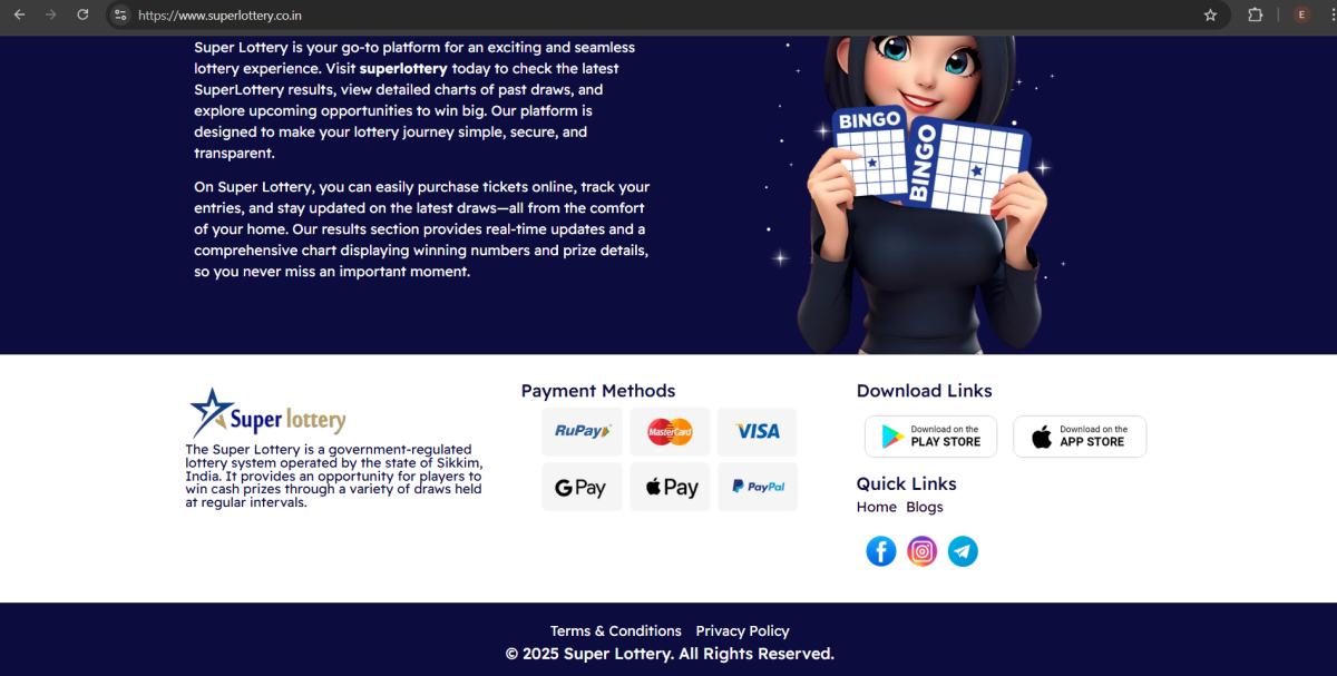 The legality of lotteries in India is governed by the Lotteries (Regulation) Act, 1998, which allows only state governments to run or authorize lotteries. Any platform claiming to operate a lottery must clearly show government approval.