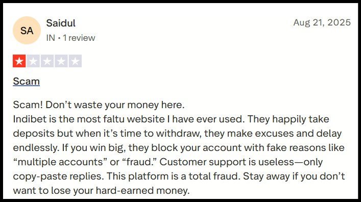 This does not automatically prove Indibet is illegitimate, but it raises the overall risk profile, especially for login security, data privacy, and payment safety.