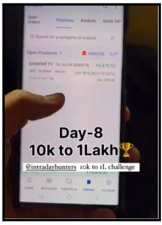 - “Day-8: 10k to 1Lakh” – claiming to grow ₹10,000 to ₹1 lakh in just 8 days