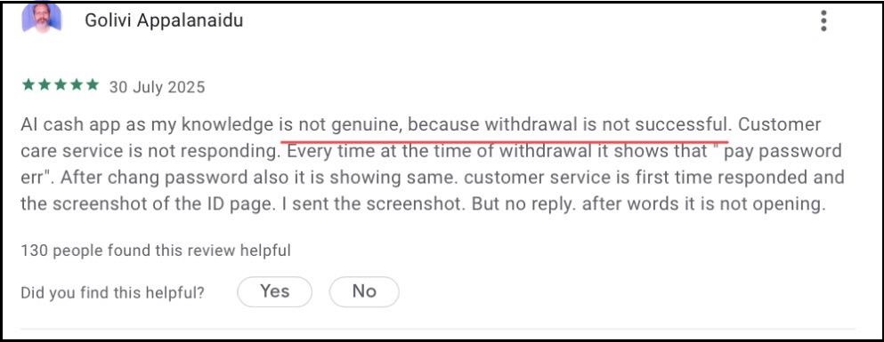 Apps like AI Cash are not safe to use because they exhibit similar characteristics to fraudulent apps. Making money is never an easy task.