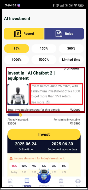 These are some of the investment plans mentioned in the app and all of these have high returns.
