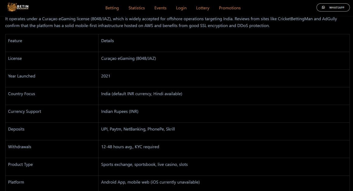 BetInExchange hides behind a Curaçao gaming license, which may sound fancy, but it has zero legal validity in India.