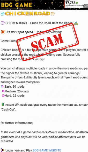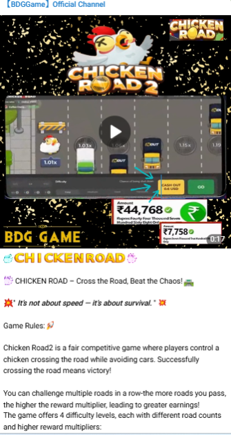 Chicken Road is often promoted by Big Daddy Telegram Channel(BDG Telegram Channel), and BDG itself has a long list of complaints about fake earnings, blocked withdrawals, and sudden app shutdowns.