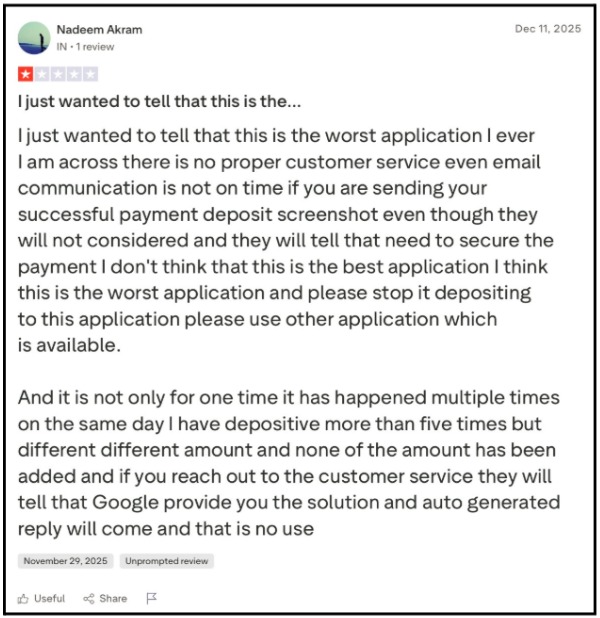Users describe it as a “big fraud gaming company,” citing uncredited deposits and endless withdrawal delays.