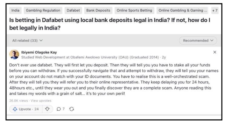 Dafabet’s reviews from Indian users reveal a pattern of disappointment outweighing any positives.
