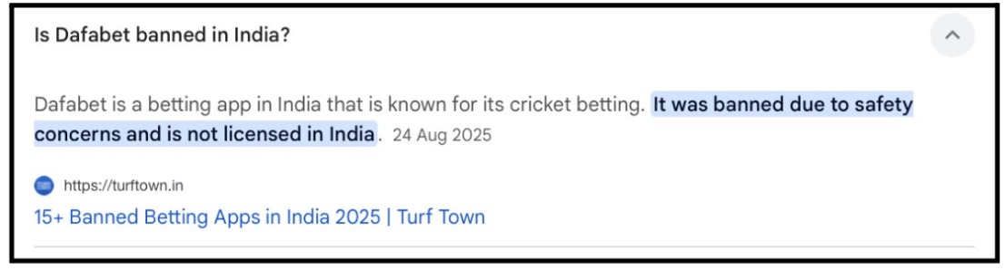 Finally, the government has actively banned Dafabet, blocking thousands of URLs, including it under the IT Act Section 69A and the 2025 Gaming Act.