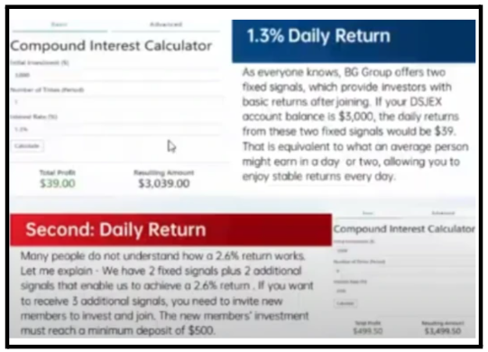 However, reality tells a different story. According to BehindMLM’s investigation, DSJ Exchange operates as a “click-a-button” Ponzi scheme connected to BG Wealth Sharing (also called BG-168).