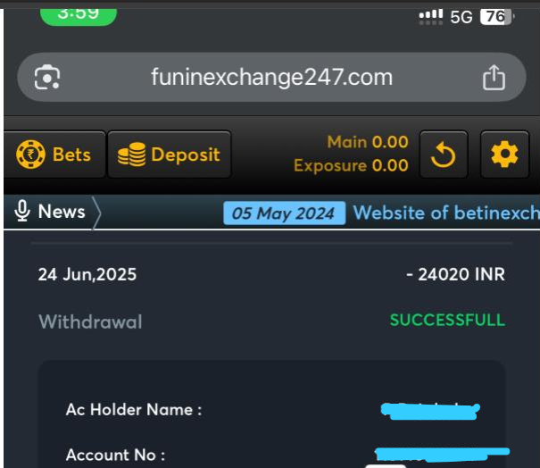 “My withdrawal requests from Funinexchange are not credited to my bank account.”