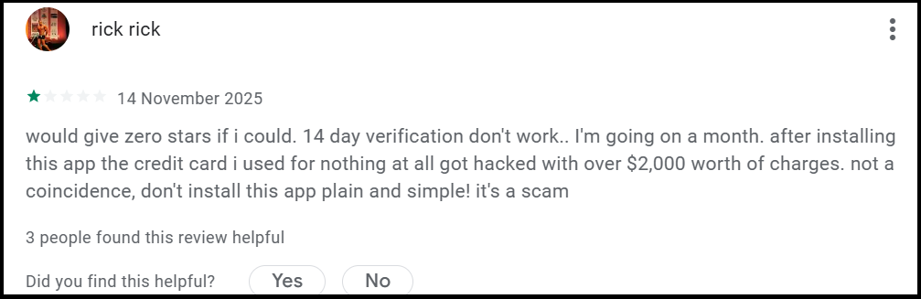 1. Identity Verification Never Completes – One verified user on Google Play stated: “It’s been 14 days, like it says the maximum time it would take to have my identity verified, and still not yet, and it will not allow me to transfer my earnings, 8000rs. minimum, which I have exactly, into my linked card”.